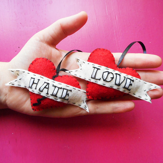 FILZ ORNAMENTE: Old school "LOVE-HATE" Auf Roten Herzen