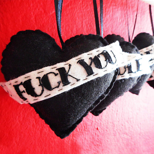 FILZ ORNAMENTE: Gestickte Schimpfwörter Auf Schwarzen Herzen