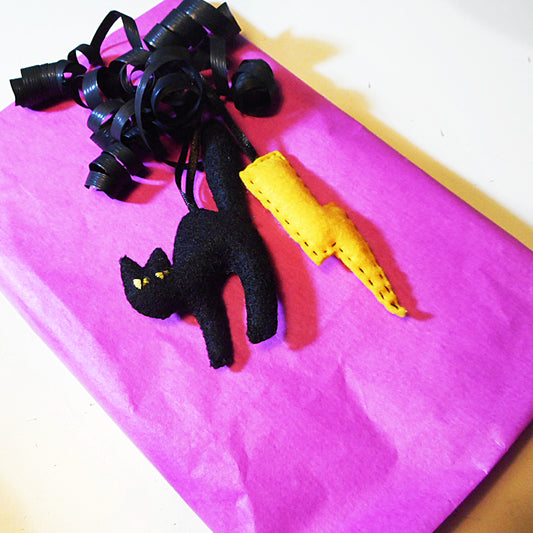 FILZ ORNAMENTE: Schwarze Katze & Blitz