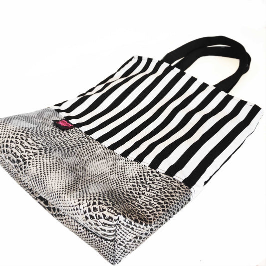 TOTE TASCHE: S/W Gestreift & Silber Krokodil Lederimitat