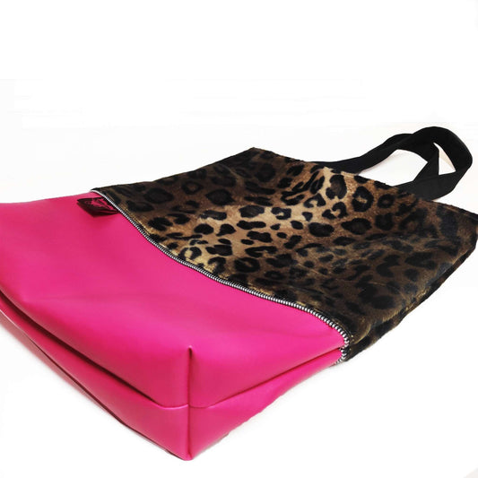 TOTE TASCHE: Leoparden Fellimitat & Pinkes Lederimitat