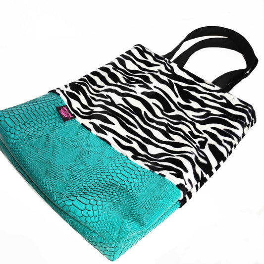 TOTE TASCHE: Zebra Fellimitat & Türkis Krokodil Lederimitat