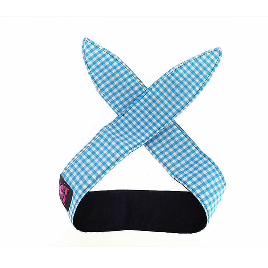 BREITES HAARBAND: Türkis/Weiß Kariert