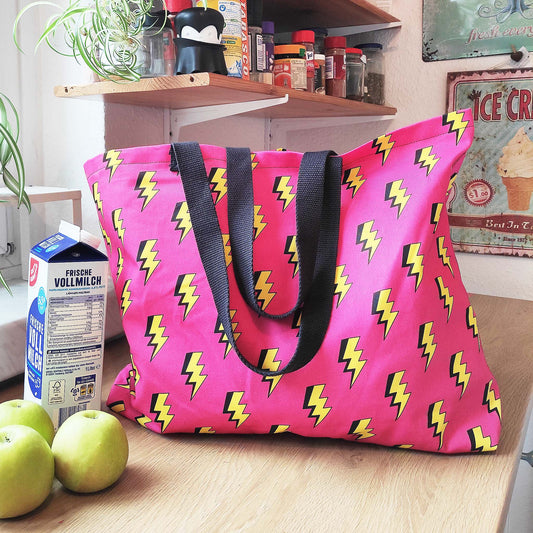 SHOPPER TASCHE: Gelbe Blitze Auf Pink